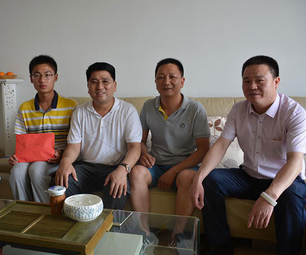 7月2日下午,徐州市福建商会会长王爱钦、监事长张祖泽、常务副会长兼秘书长黄永水、常务副会长谢辉万等来到商会会员阮文汉家,就其子阮海峰荣膺徐州市高考理科状元,代表福建商会向他们全家表示祝贺和慰问,并颁发奖金1万元,以示鼓励。